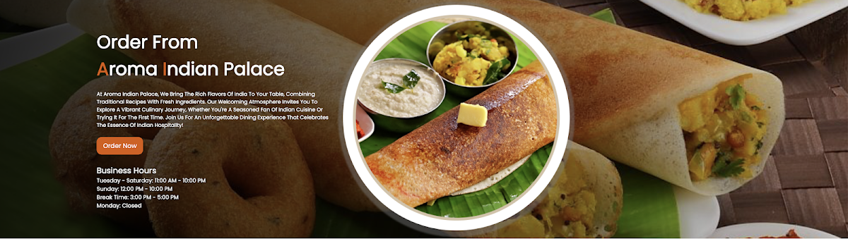 Aroma was a pleasant experience overall. The ambiance was okay, and the service was spot on. The presentation of the dishes was beautiful. The dosa and butter chicken were good, though I felt the butter chicken lacked a bit in richness of flavor and consistency. As for the flour-based dishes we ordered(dosa, garlic naan, puri), they were very bland. I'm not sure if that's how they are supposed to be, but I personally wish they had more flavor. The sauces were spot on, very flavorful. Still, it was a great experience. I'm giving 5 stars because my feedback reflects more about the business itself than my personal taste preferences.