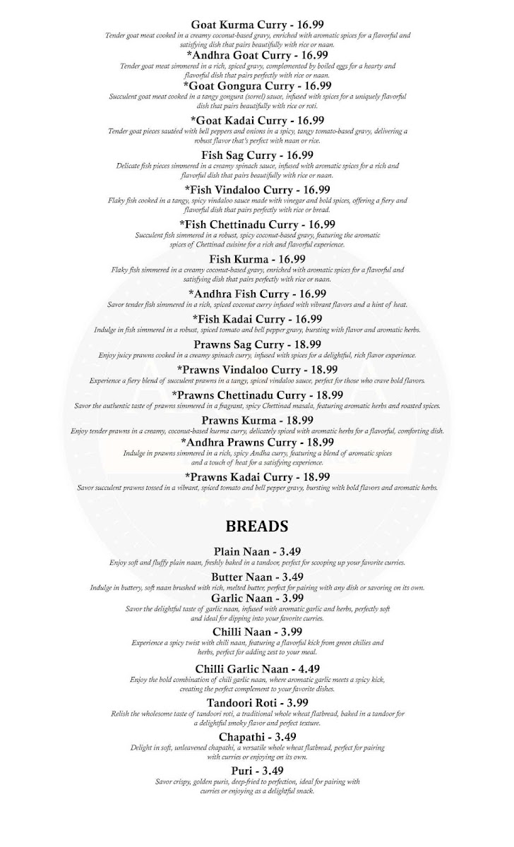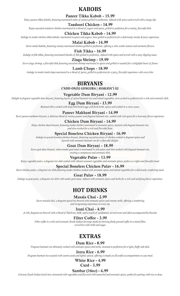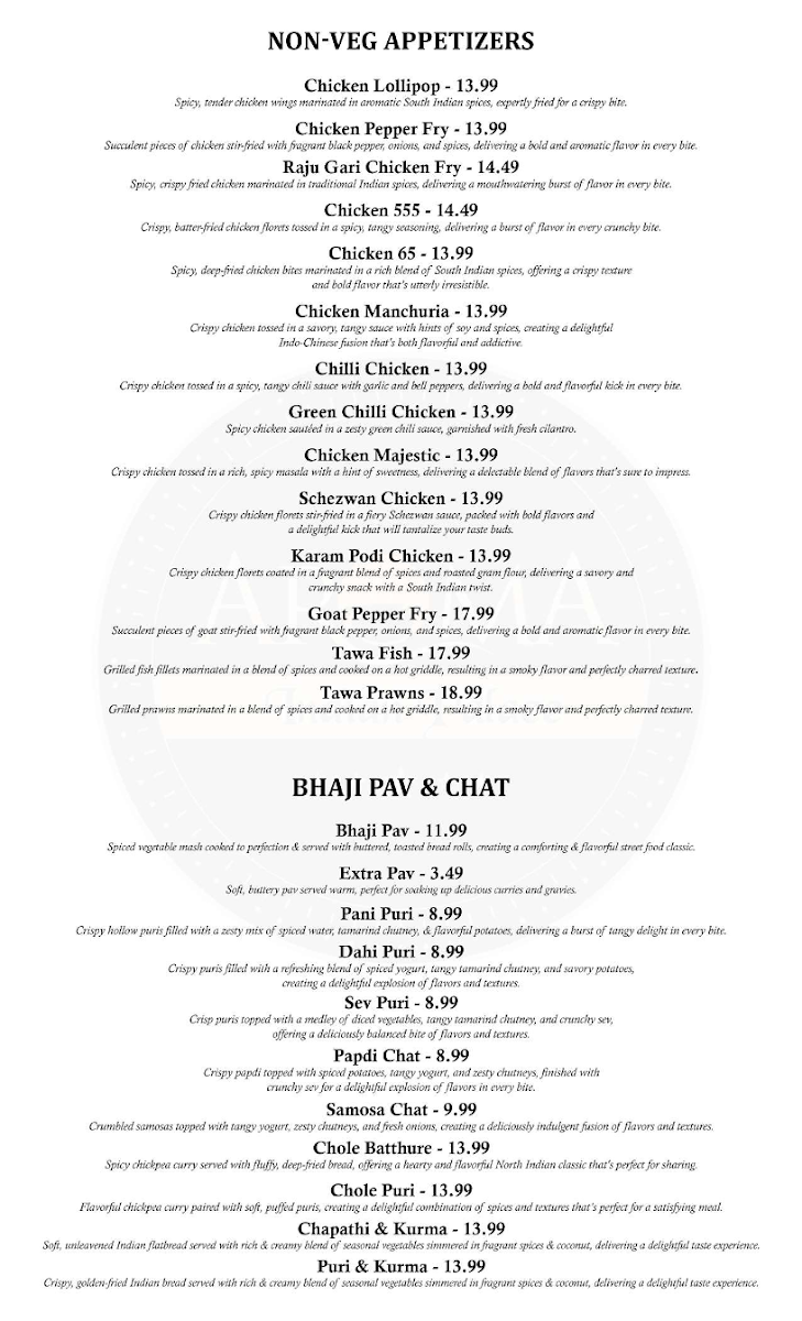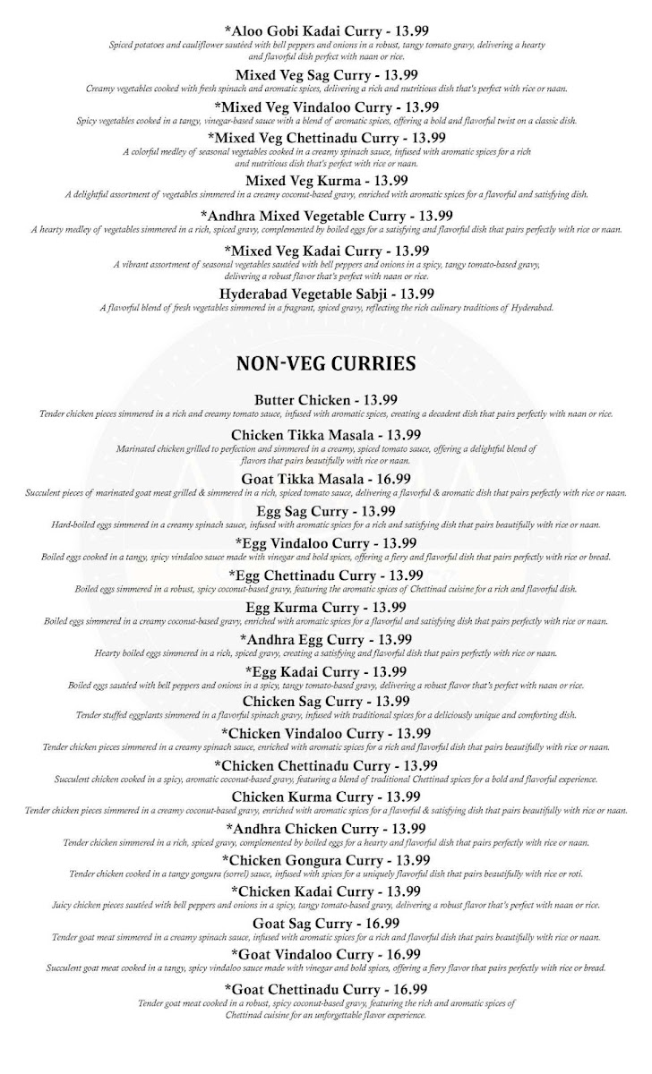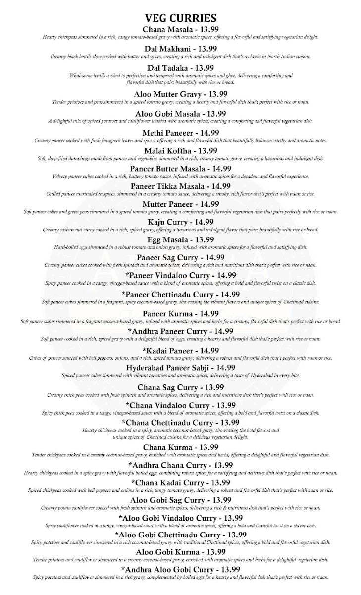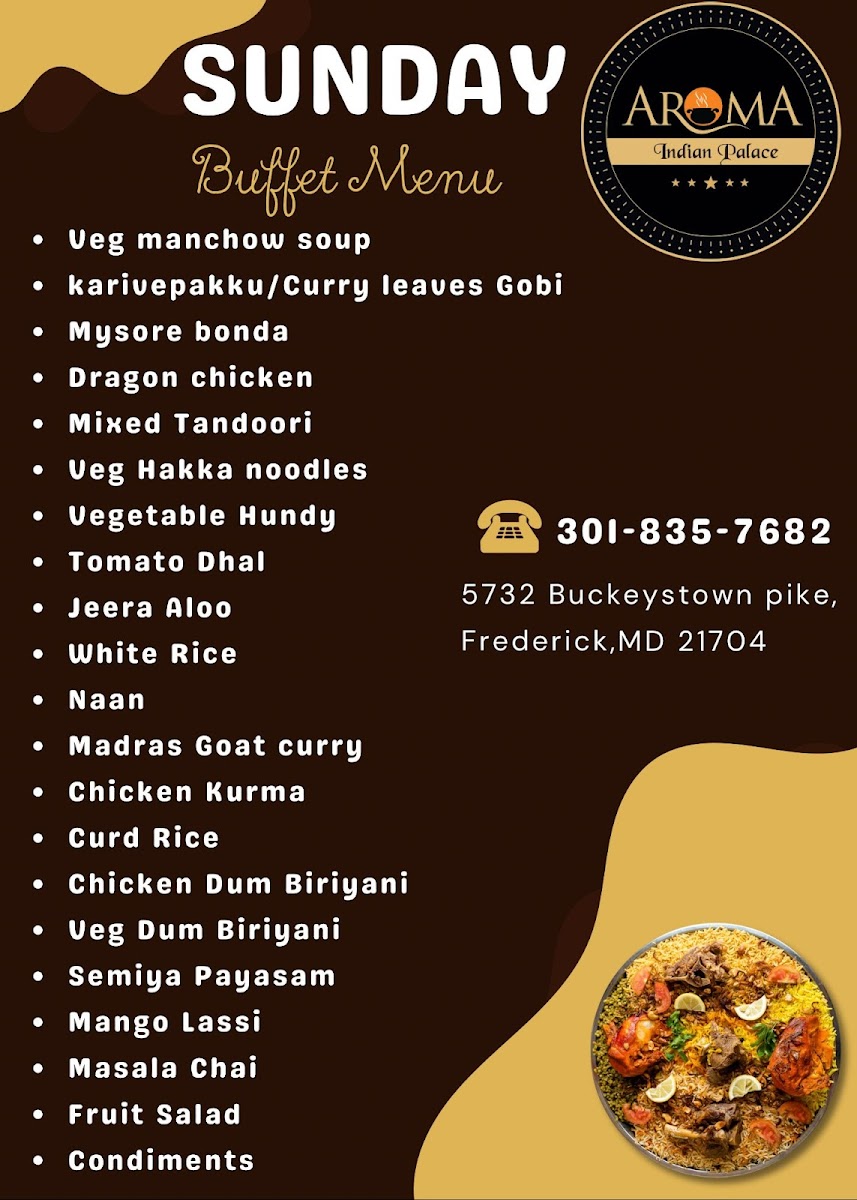 Aroma Indian Palace, Frederick MD Menu